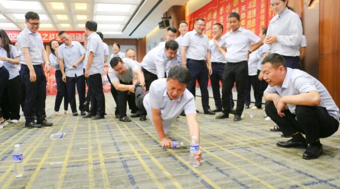 【勇創(chuàng)新高】環(huán)節(jié),主要內(nèi)容是計(jì)時(shí)30分鐘的水瓶挑戰(zhàn)。一聲哨響之后,各個(gè)戰(zhàn)隊(duì)立即展開智力和團(tuán)隊(duì)協(xié)作力的大比拼,一次次挑戰(zhàn)自我,一次次超越自我,在嘗試中不斷打開思維,開放心態(tài),學(xué)習(xí)更優(yōu)模式以期實(shí)現(xiàn)目標(biāo)。同時(shí)大家還能迅速找到自己的優(yōu)劣勢(shì),揚(yáng)長(zhǎng)避短,團(tuán)結(jié)協(xié)作,終發(fā)揮出的團(tuán)隊(duì)力量,達(dá)成各自隊(duì)伍的目標(biāo)。